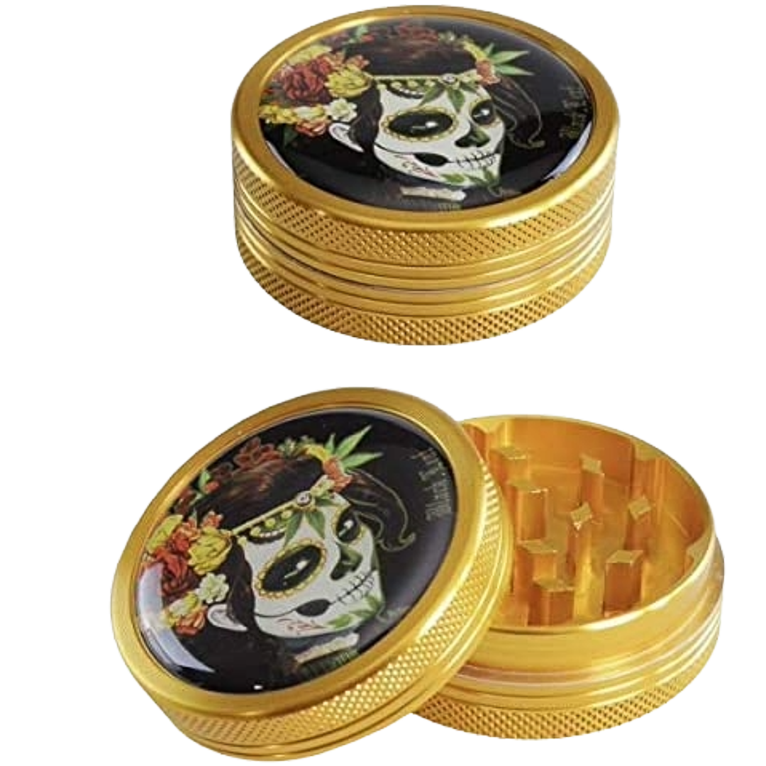 Cu o greutate perfect echilibrată de 77 de grame și un diametru optim de 50 mm, acest model compact se așează natural în palmă, oferindu-ți un cuplu de rotație excelent. Dispozitivul iese din anonimatul râșnițelor obișnuite grație modelelor sale gravate. Poți alege între două variante vizuale de excepție: Katrina (un design vibrant și detaliat, cu influențe artistice specifice sărbătorii Dia de los Muertos) și Celtic (o gravură complexă, inspirată de nodurile mistice și mitologia celtică). Ambele modele sunt disponibile în finisaje metalizate premium de Auriu și Argintiu.