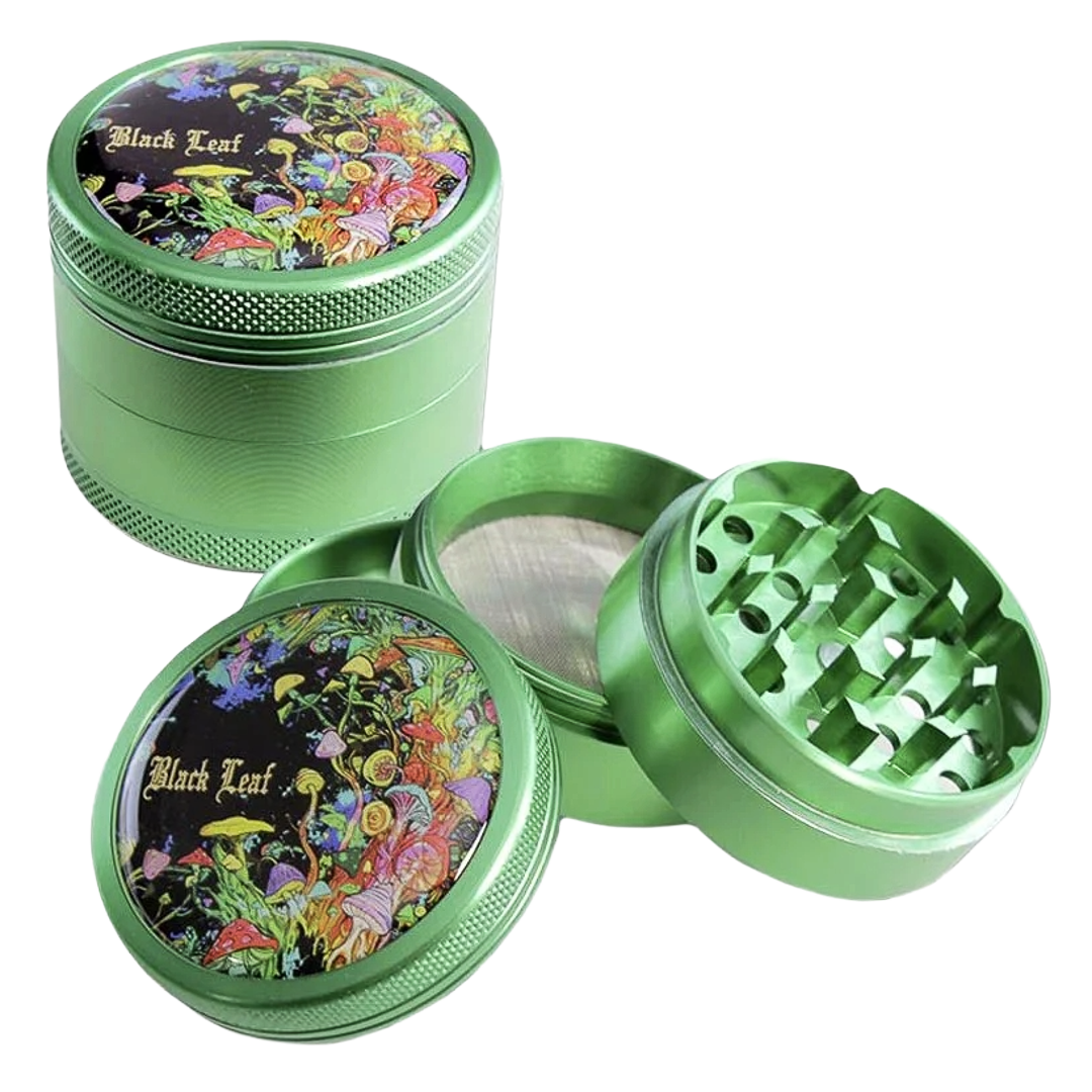 Grinder aluminiu Black Leaf 50mm: Performanță pe 4 niveluri și design vibrant