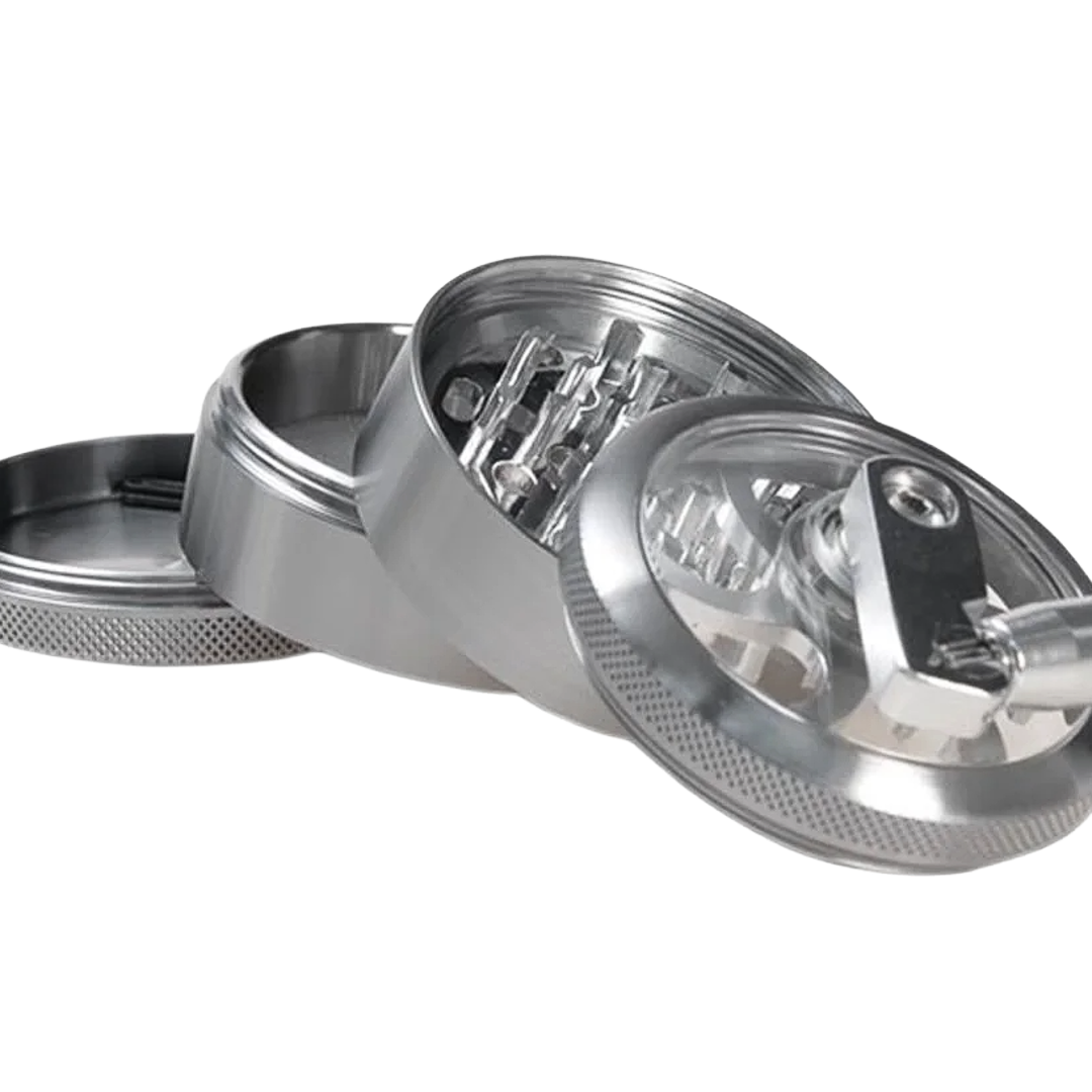 Având un diametru generos de 63 mm, acest model îți permite să procesezi cantități mai mari de amestecuri botanice deodată, economisind timp prețios. Disponibil în două culori metalizate elegante (Argintiu clasic și Albastru vibrant), acest accesoriu premium arată, la prima vedere, similar cu o râșniță mecanică fină de condimente, însă ascunde la interior o tehnologie de tăiere extrem de ascuțită și performantă.